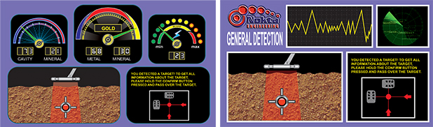 Vous pouvez voir le métal, les vides clairement sur ​​l'écran Sous 2 formes différentes: par les jauges ou numériquement. En outre, vous pouvez déterminer le point de pic et donc facilement identifier la cible.